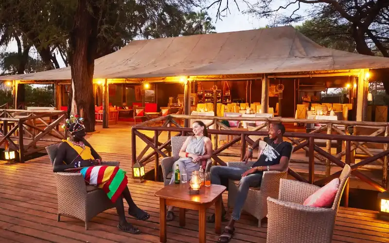 The terrain is a striking mosaic of riverine forests and rugged hills—a sanctuary for the “Samburu Special Five,” including the Reticulated Giraffe and Grevy’s Zebra. As the sun begins its descent, we invite you to experience the quintessential safari tradition: sundowners at a breathtaking viewpoint, watching a golden glow settle over the plains as the wilderness transitions into the magic of the African night.