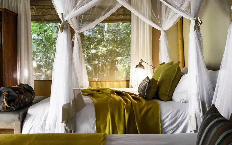 Tucked deep within Bwindi Impenetrable Forest, home to half of the world’s mountain gorilla population, Sanctuary Gorilla Forest Camp is an exclusive eco-luxury retreat. The camp’s intimate, elegantly appointed tents offer comfort and privacy while providing direct access to unforgettable gorilla trekking adventures. Set in a secluded location and guided by expert naturalists, Sanctuary Gorilla Forest Camp delivers an immersive wildlife experience, allowing guests to witness these gentle giants in their pristine habitat while savoring the serenity and beauty of Bwindi.
