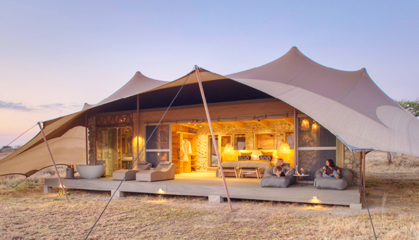 The camp’s design blends seamlessly with the natural environment, featuring luxury tents that are both spacious and comfortable. The main lodge area offers various spaces for guests to relax, including a pool sala for al fresco dining and a signature bar. The camp is also committed to sustainability, operating entirely off-grid with a custom-designed solar system and using eco-friendly materials to minimize its environmental impact.