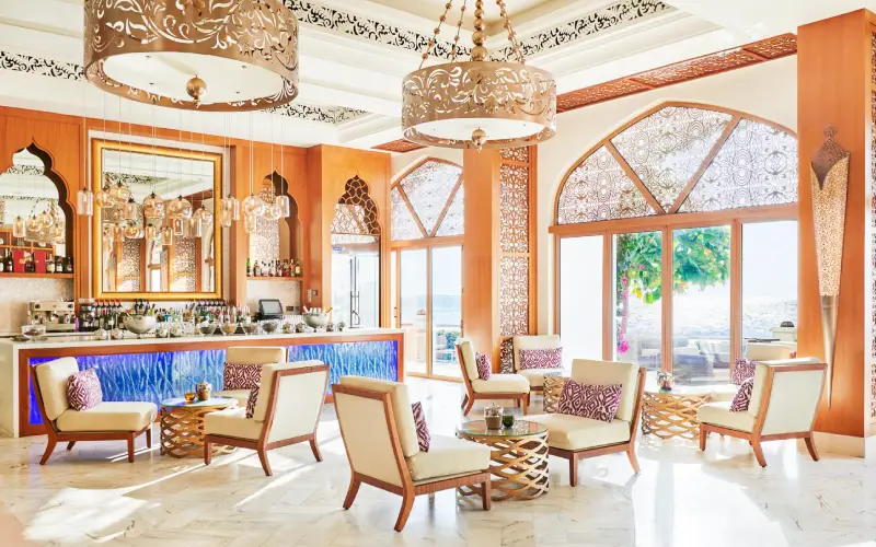 Amenities at the resort include three outdoor pools, a full-service spa with a sauna and fitness center, and a wide array of activities such as tennis, beach volleyball, kayaking, and snorkeling. The hotel features seven restaurants and five bars, providing a diverse selection of international and local cuisines. A notable dining option is the Jetty Bar & Restaurant, located at the end of a long jetty over the Indian Ocean.