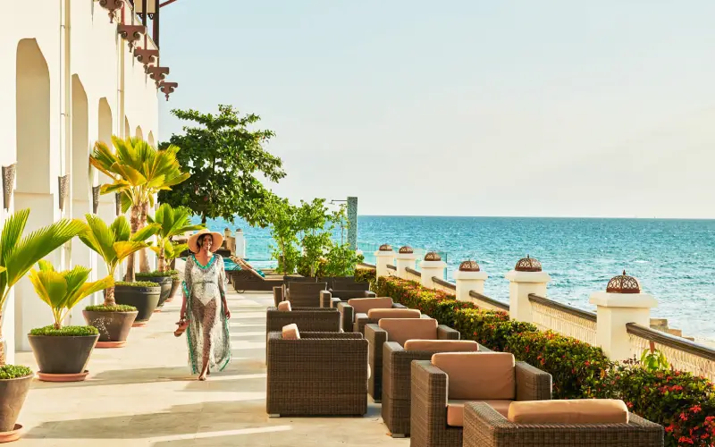 From the hotel, you can easily explore the town’s attractions on foot: the lush Forodhani Gardens with its vibrant street food scene, the Old Fort which has served various purposes since 1699, the Old Dispensary, the Peace Memorial, and the Palace Museums. The bustling spice markets are filled with fragrant, colorful wares, including some of the finest coffee in the world. You might also find beautiful Tanzanian jewelry and visit the birthplace of Farrokh Bulsara, also known as Freddie Mercury of Queen.