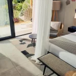 The hotel features 51 elegant rooms and suites, each with a private balcony offering stunning views of either the Indian Ocean or the hotel’s lush courtyard. The interiors are a beautiful fusion of traditional Swahili style and modern comfort, with polished marble floors, intricate carved furniture, and classic Zanzibari beds.