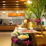 The resort features over 150 elegantly furnished rooms, each with a private terrace. It provides a variety of amenities and facilities to ensure a comfortable and active stay, including three outdoor pools, a well-equipped fitness center, and a full-service spa offering a range of treatments. For dining, guests can choose from five different on-site restaurants, which serve a mix of international, local, and Asian cuisines. The resort also has multiple bars, including a beach bar and poolside bars.