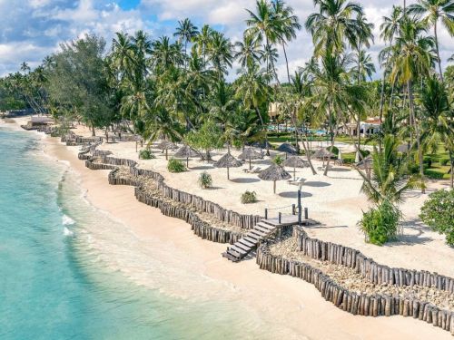 TUI BLUE Bahari Zanzibar is an ideal destination for both couples and families seeking a relaxing beach holiday. It is conveniently located about an hour’s drive from Stone Town and Zanzibar International Airport (ZNZ). The resort offers an all-inclusive option and a variety of activities, including water sports, yoga, and cooking classes, making it a perfect spot for unwinding after a safari on the mainland.
