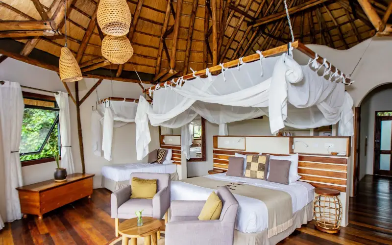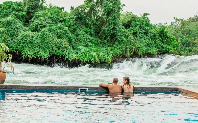 Set on a private, forest-covered island in the Nile near Jinja, Wildwaters Lodge offers an exceptional blend of exclusivity, luxury, and raw natural beauty. Surrounded by lush greenery and the dramatic rush of white-water rapids, the lodge feels both secluded and exhilarating.