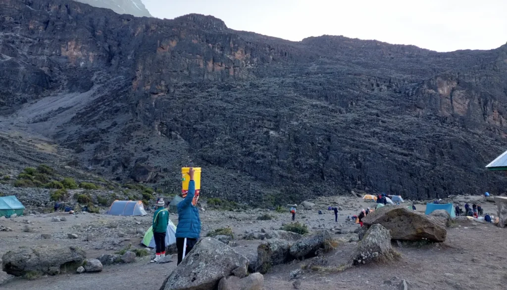 One of the most remarkable examples of this “invisible” work is how we get water to high-altitude camps. Take Barafu Camp, for instance, which sits at a staggering 15,223 feet (4,640 meters) and has no nearby water source.