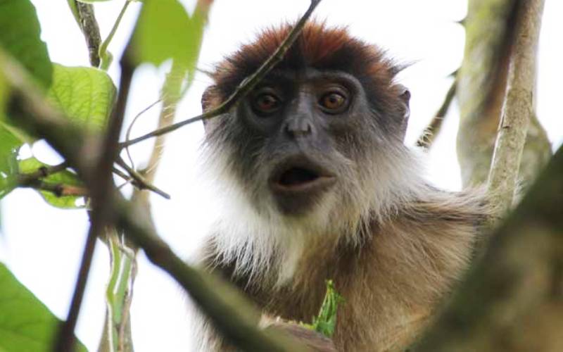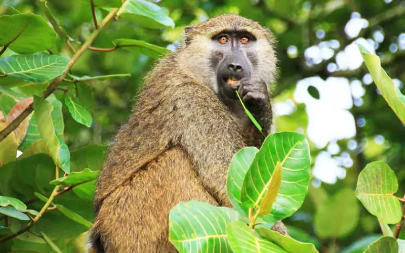 The chimpanzee groups visited in Kibale National Park are among the most habituated in Uganda, often allowing for exceptional viewing experiences. The park also boasts the highest diversity of primates in East Africa, with 13 recorded species. Common sightings include olive baboons, black-and-white colobus, red-tailed monkeys, Ugandan red colobus, and Uganda mangabeys. At night, the forest comes alive with nocturnal species such as pottos and several types of bush babies.