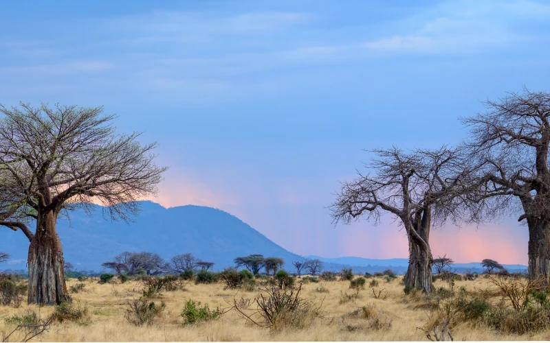 During the Dry season in May through September, Ruaha National Park offers clear blue skies and minimal rainfall. As the season progresses, the environment becomes increasingly dry and dusty. Temperatures during this period range from around 26°C/79°F during the day to 14°C/57°F at night.