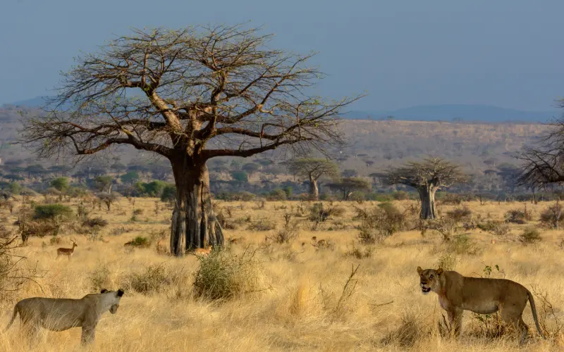 Ruaha National Park proudly boasts the wild dog as its flagship species. Few destinations offer such excellent opportunities to observe these captivating pack animals, making Ruaha one of the finest. Moreover, the park hosts the largest congregation of greater kudu in East Africa, adding to its allure. Rare antelope species like the lesser kudu, roan, and sable antelope also find refuge within Ruaha’s boundaries, enriching the park’s biodiversity.