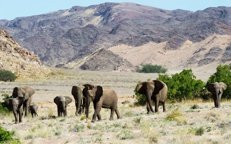 Damaraland (3-5 days): Track the majestic, desert-adapted elephants, black rhino, and lion in this breathtaking, rugged landscape.