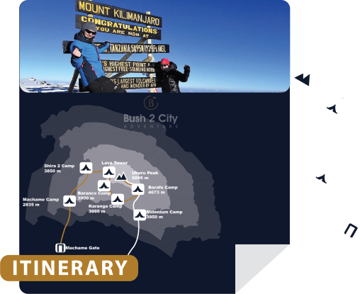 Bush to City Adventures offers two excellent options for your Kilimanjaro ascent: