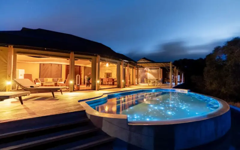 The lodge features just six spacious cottages, comfortably furnished and equipped with modern amenities, including complimentary Wi-Fi. Guests benefit from an exclusive safari experience with access to vast private wilderness. Game drives offer opportunities to see the Big Five—elephants, lions, leopards, buffalo, and rhinos—as well as many other protected species. The reserve is especially renowned for its large and carefully protected population of black rhinos, one of the most significant in Africa.