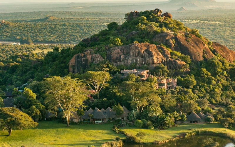 The main house at Ol Jogi Wildlife Conservancy, once the private residence of the renowned Wildenstein family, along with its charming cottages, sits on a rocky hill overlooking the expansive Laikipia Plateau in central Kenya. The conservancy offers a rare combination of refined comfort and exceptional privacy, set within a vast wildlife-rich environment with very few visitors, allowing for an exclusive safari experience.