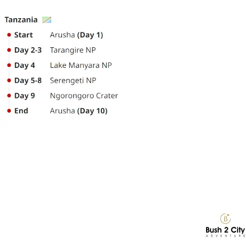 The tour both commences and concludes in Arusha.