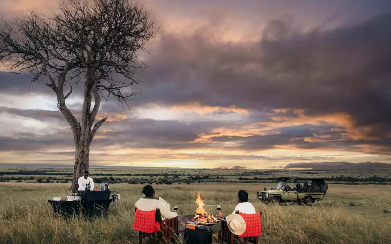 Take a flight to Nanyuki, then continue to Ol Pejeta Conservancy, a private reserve spanning 90,000 acres of pristine African wilderness where the Big Five roam freely. Arrive at your exquisite tented camp in time for lunch. Tambarare Camp sits among towering fever trees at the foot of Mount Kenya, overlooking a sweeping grassy plateau. Your spacious tent features a private veranda and an en-suite bathroom with a walk-in shower. In the evening, join fellow guests for a welcoming dinner under the African sky.