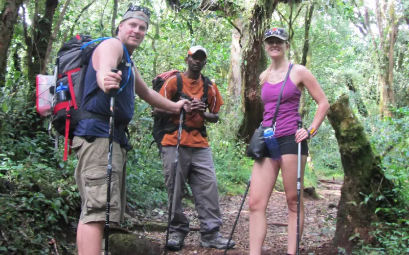 Your first day on the Marangu route begins with a roughly hour-long drive to Marangu Gate. From there, you'll embark on a trek through the lush rainforest, characterized by its vibrant green canopy. A picnic lunch will be served at Kisambioni, approximately halfway through your journey. You'll continue through the rainforest until you reach your day's destination, Mandara Hut. The afternoon is yours to relax, or you can opt for a short walk around Maundi Crater for an excellent view of Taveta to the east.