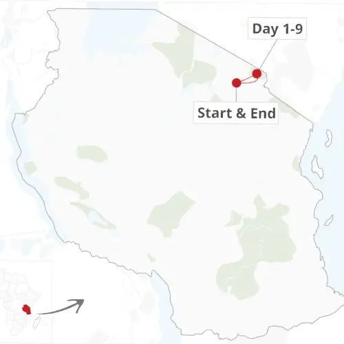This tour starts and ends in Moshi or Arusha.
