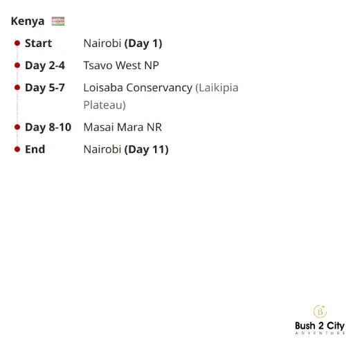 The tour begins and ends in Nairobi
