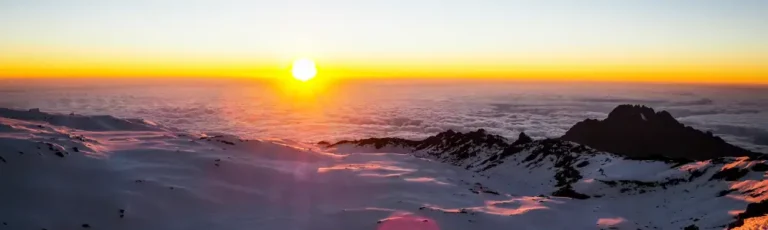 Your journey to the peak of Mount Kilimanjaro starts just after midnight, taking you across sapphire glaciers to Stella Point. A beautiful sunrise will illuminate the summit as you proceed toward your ultimate destination: Uhuru Peak, known as the "Rooftop of Africa."