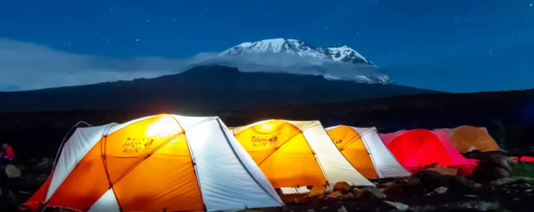 From the summit, you'll feel an immense sense of exhilaration and triumph as you look down upon the clouds and ice. Following a celebration with your support team, you'll descend to Barafu Camp for a short break, then move on to Mweka Camp. There, a hot meal will be waiting, and you'll spend your last night on the mountain unwinding beneath the stars.